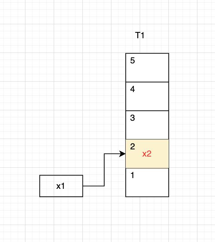 Example, we want to add $x_1$ to the hash tables, the hash key of $x_1$ is the bucket (2) in $T_1$.
