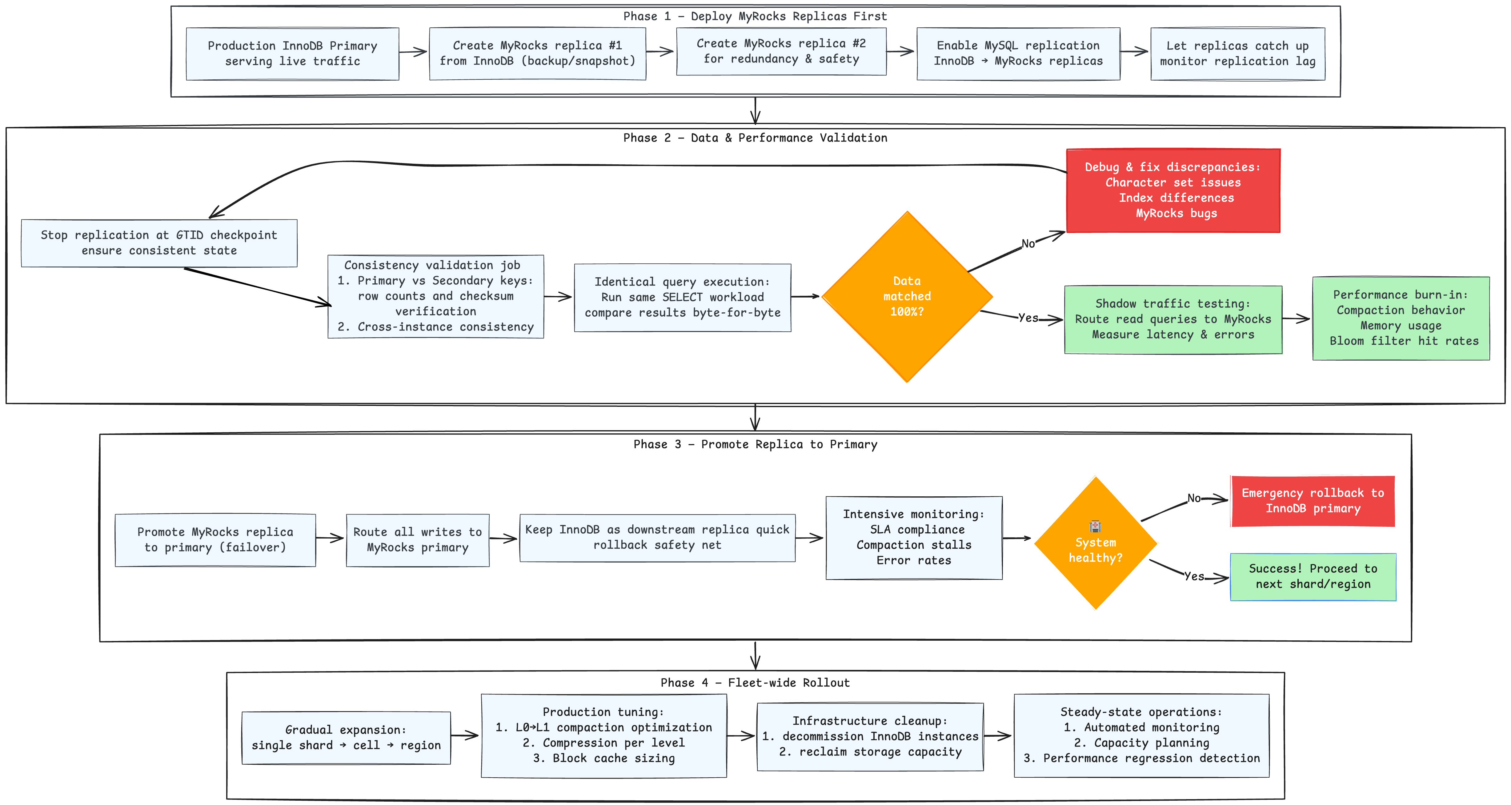 MyRocksproved itself in read-only capacity (and passed all consistency checks), they moved to the next phase
