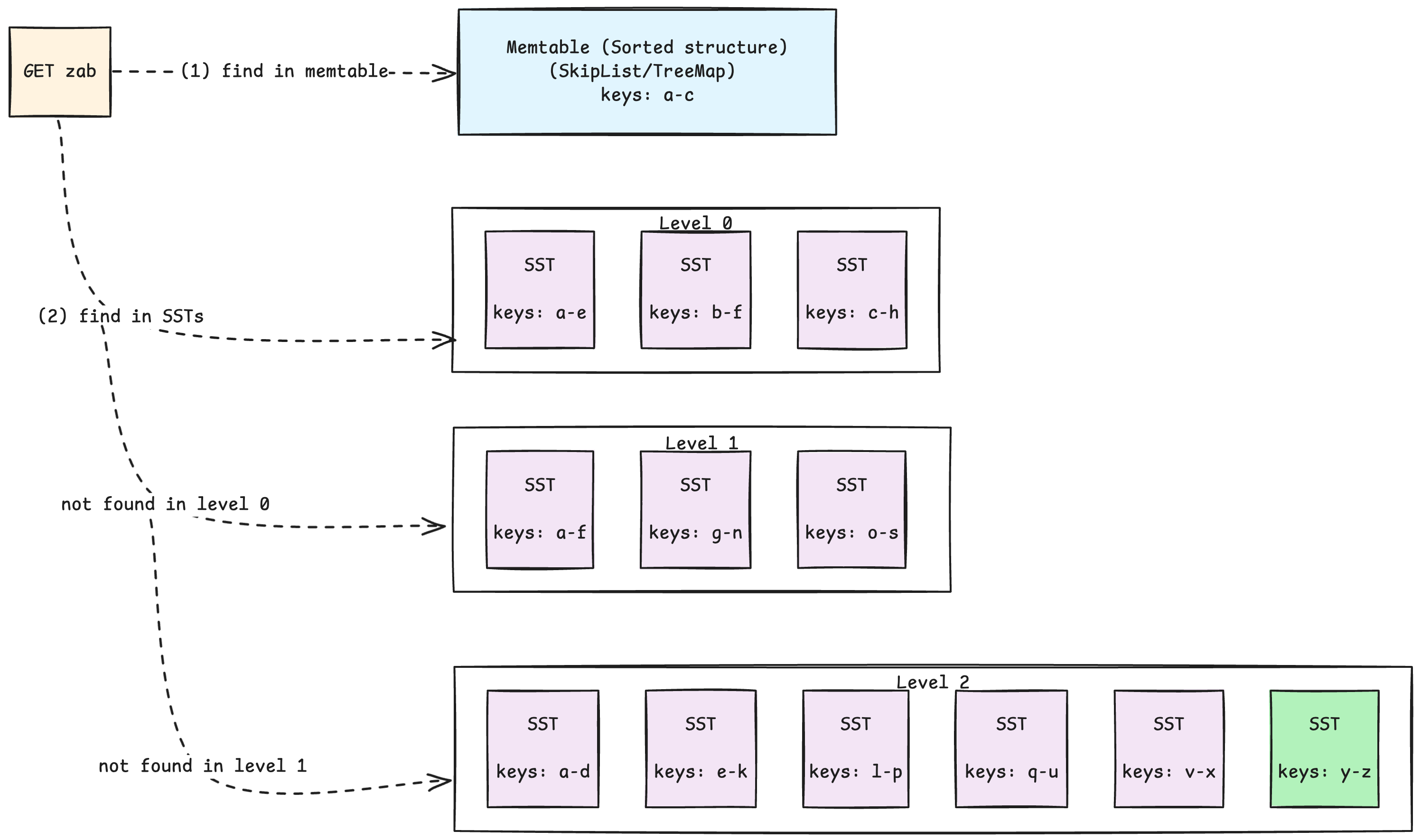 SSTablesshare the same keys - in case there are multiple updates to that key), but from Level 1 onward, each SSTable is range-partitioned with no overlaps, ensuring efficient lookups and reduced read amplification.