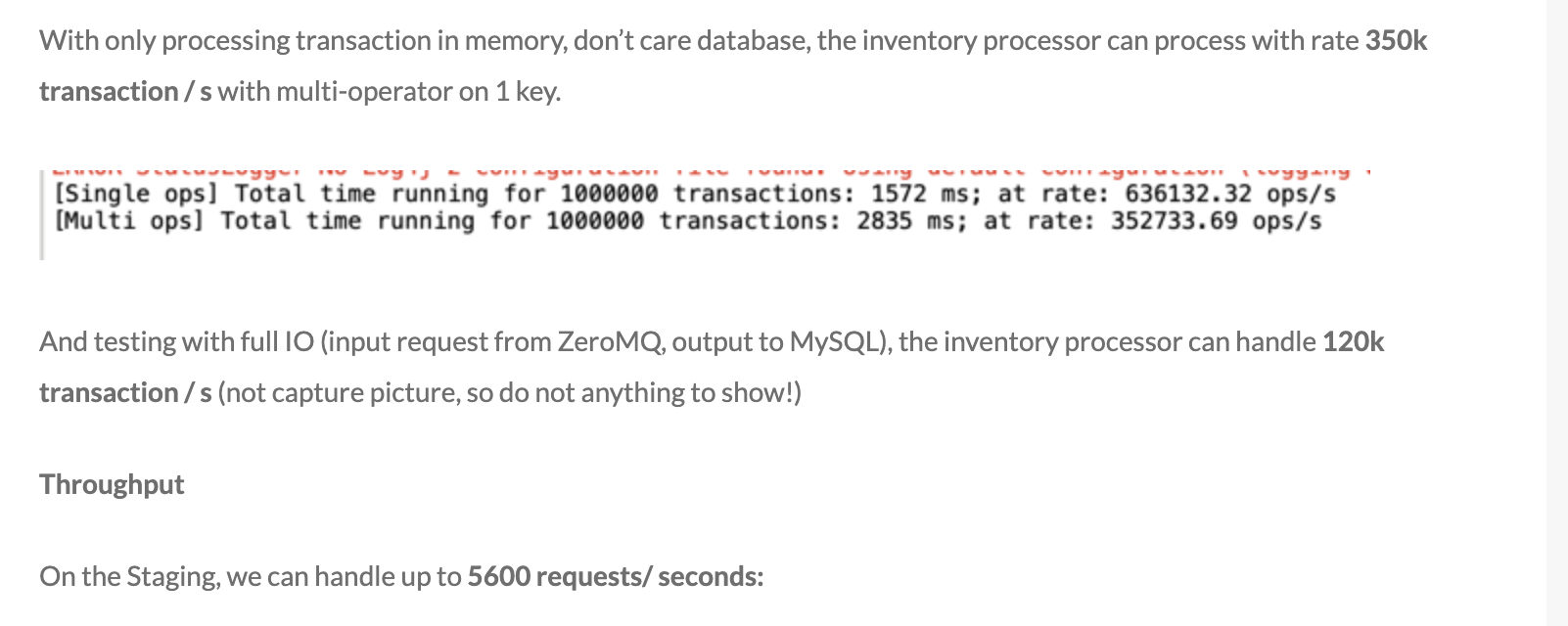 With Disruptor, the LMAX can handle about 6M TPS, it’s a impressive number that a system can handle.