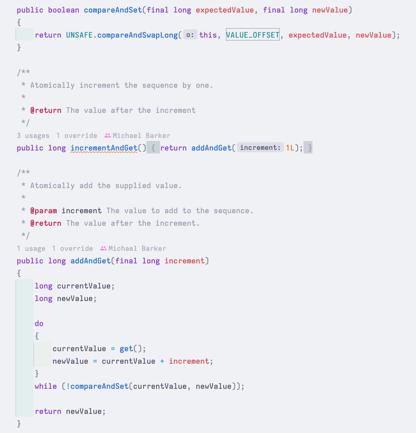 As you can see that, the CAS benchmark shows a big improvement compared to code with Lock (2x times in single thread ~3x times in two threads). Of course, it can not beat the singleThreadIncrement.