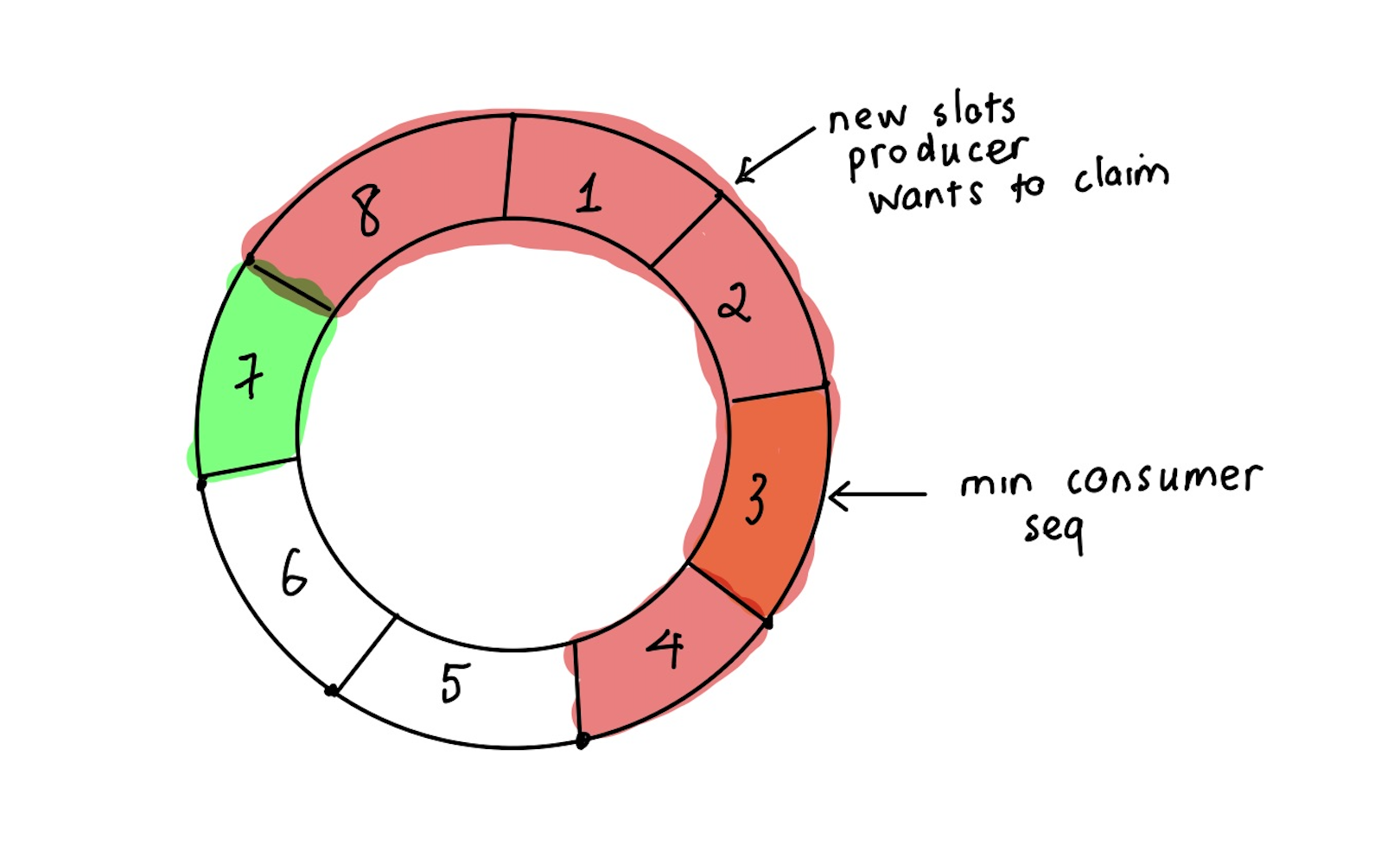 If producerSeq + slots - bufferSize > minConsumerSeq → we do not have enough slot