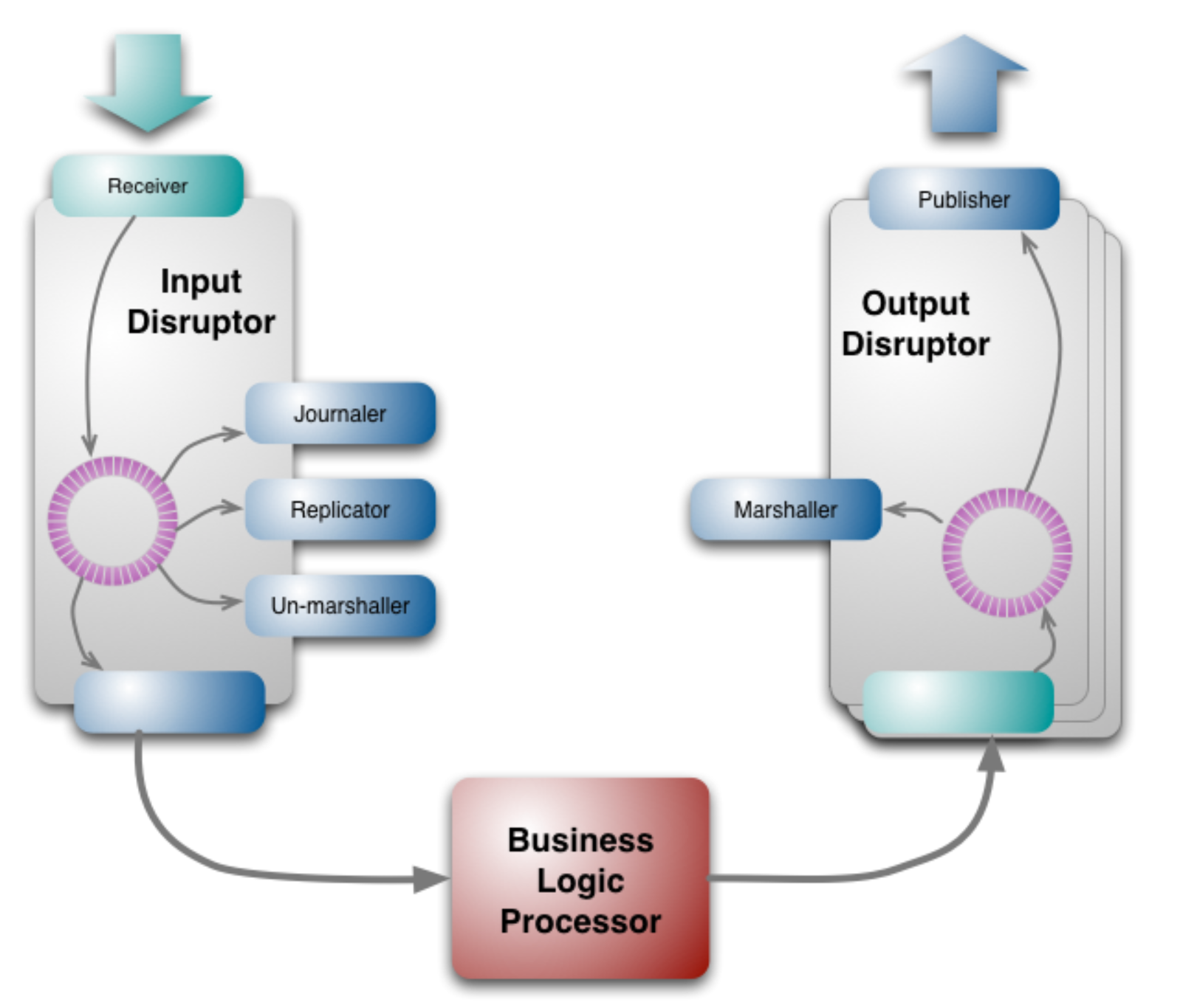 The core of the system lies in a single-threaded business logic processor, which consumes data from the input RingBuffer and performs all necessary operations in memory. Remarkably, this setup demonstrates remarkable efficiency, capable of handling up to 1 million transactions per second on an average server.