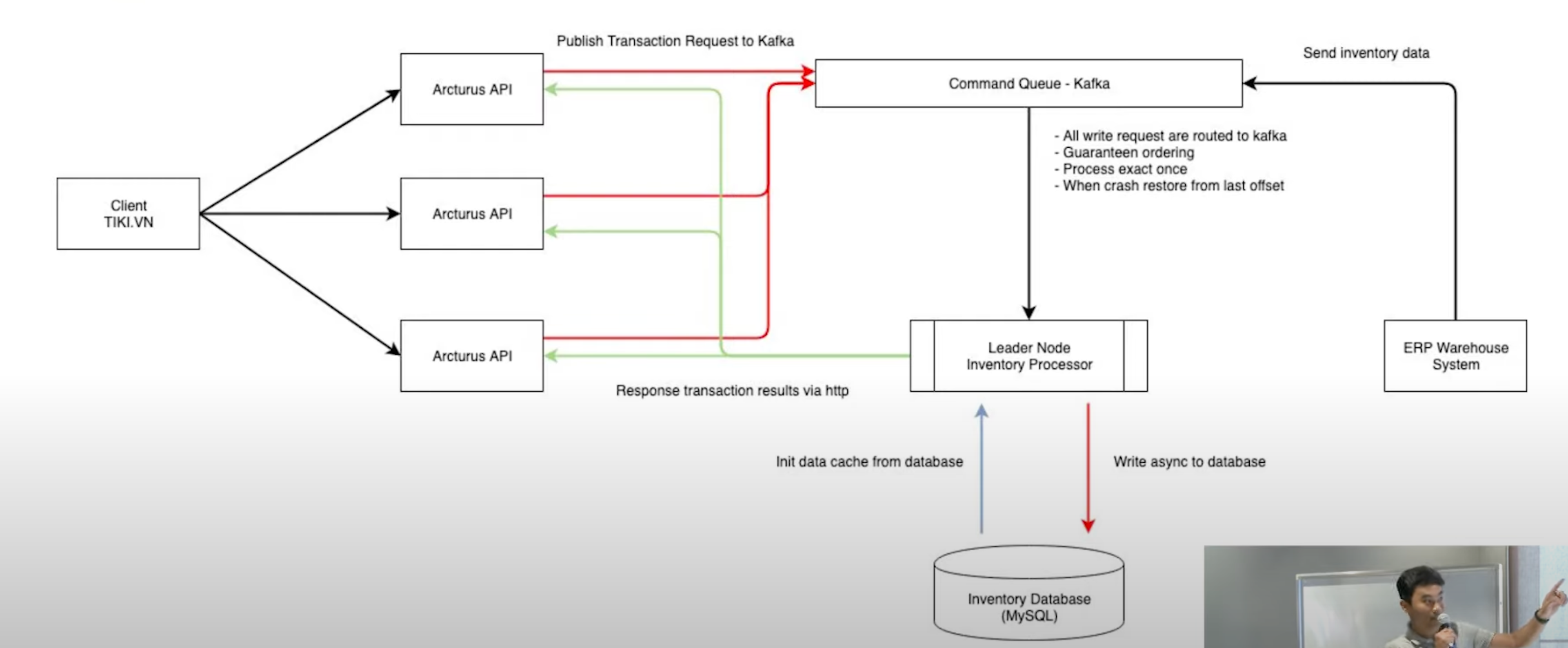 The heart of Arcturus is the Leader Node Inventory Processor which is a single service that that handles all the traffics. The reason for that is nothing faster than processing everything in memory in a single server.