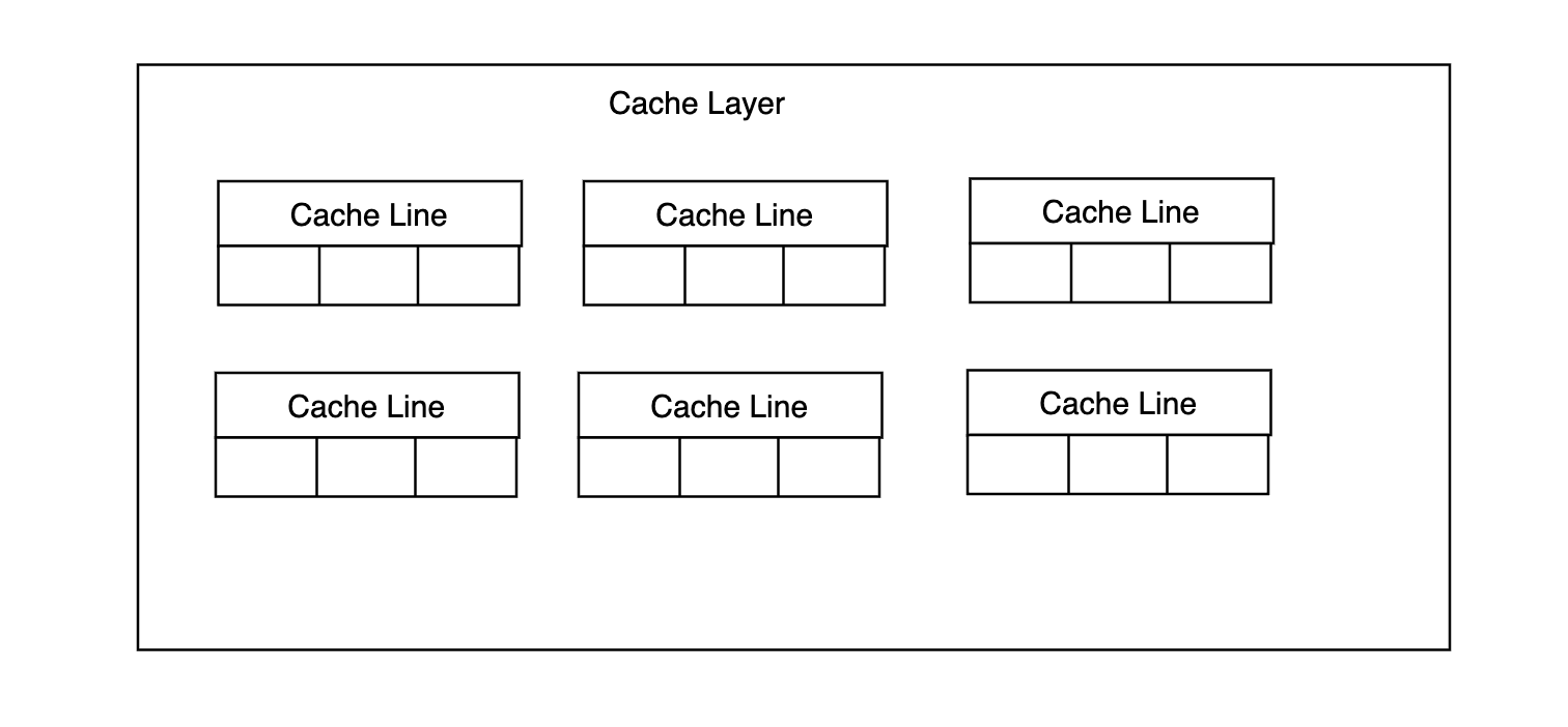 Let’s dive deeper, in each cache layer, the data is stored in units called cache lines. The size of cache lines are a power of 2 of contiguous bytes which are typically 32-256. The most common cache line size is 64 bytes. For example, A Java long is 8 bytes, so in a single cache line you could have 8 long variables.