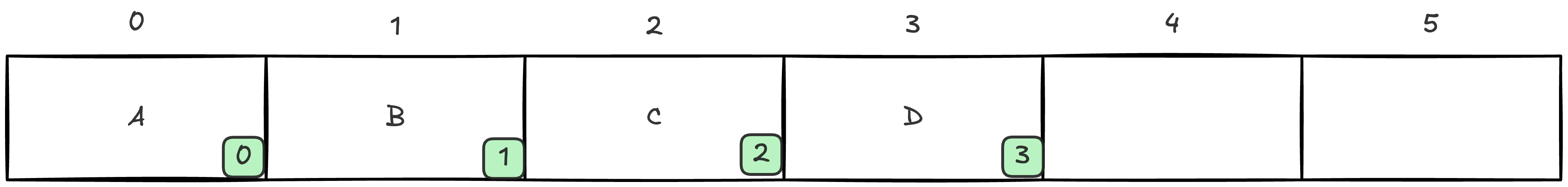 h(k) = k % 7h(k) = k % 7For simplicity, we use the same expression for both the hash function and the index function. In a real implementation, these are often treated separately. We will return to this point in the implementation section.