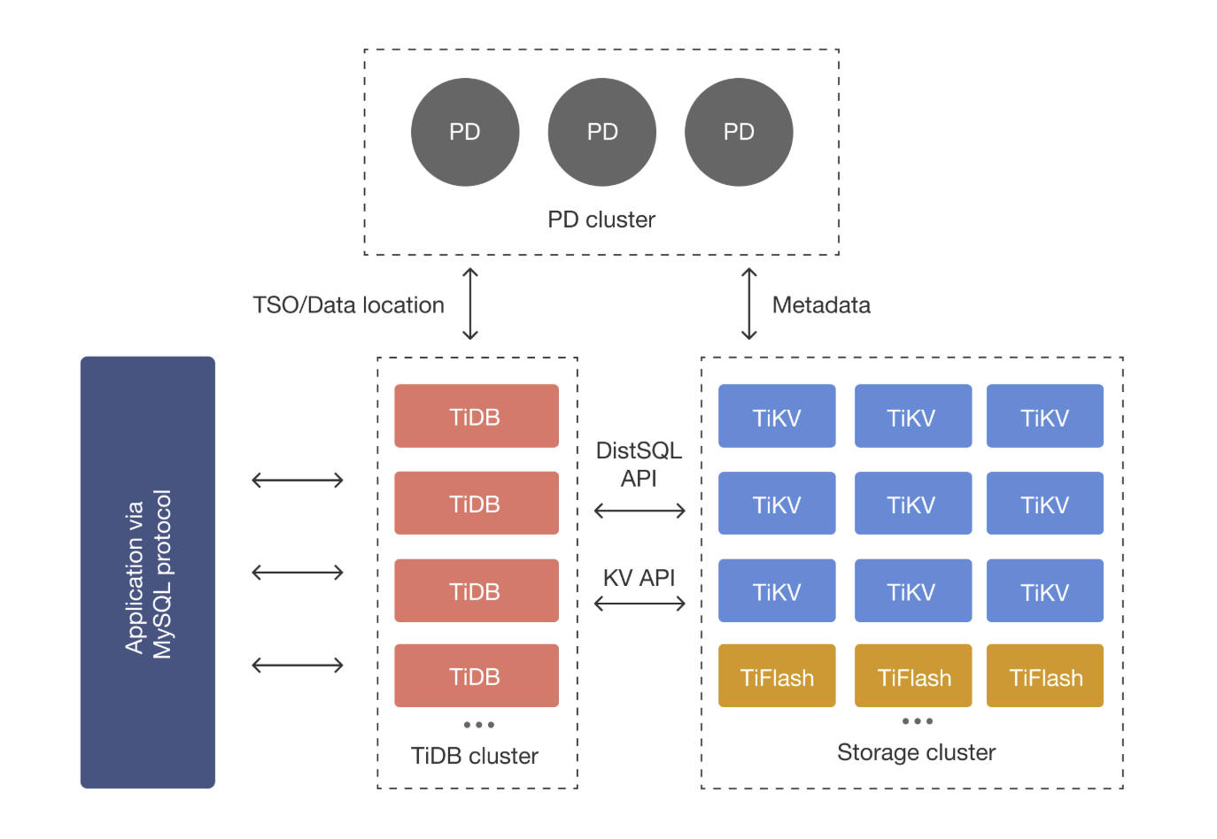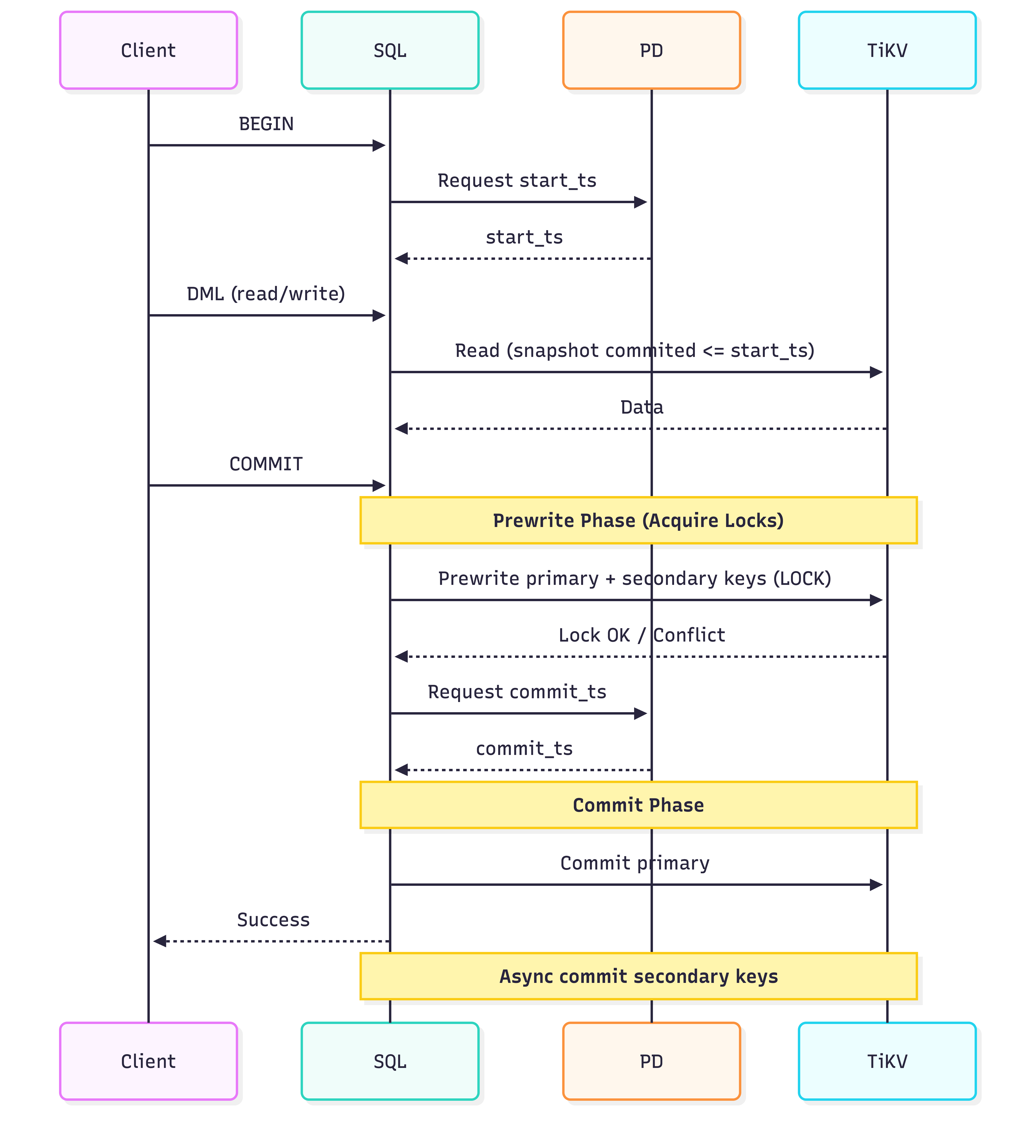 - TiKV: Stores data, implements MVCC, and persists locks and versions.