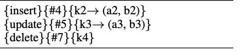column_key: [k1, k2, k3, ...] column_a: [a1, a2, a3, ...] column_b: [b1, b2, b3, ...]column_key: [k1, k2, k3, ...] column_a: [a1, a2, a3, ...] column_b: [b1, b2, b3, ...] - Delta space: newly inserted or deleted updates appended in order.